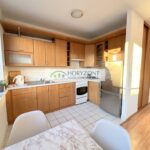 1. salonu z aneksem kuchennym wyposażonym w piekarnik, okap, płytę elektryczną, lodówkę z zamrażarką i czajnik elektryczny. Szafki w zabudowie. Kuchnia wyposażona w garnki, sztućce, zastawę stołową, deski do krojenia, pojemniki do segregacji śmieci. W części kuchennej postawiony również stół jadalniany z trzema krzesłami. salon z komfortową sofą – rogówką z funkcją spania i dodatkowym pojemnikiem na pościel, szafka rtv, stolik kawowy.