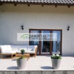 Od strony frontowej budynku wydzielona została strefa podjazdu z kostki brukowej z miejscem do parkowania, budynek monitorowany, oświetlony, światłowód.