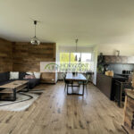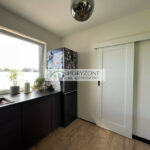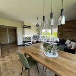 Do wykończenia podłogowego w salonie, pokojach oraz kuchni zastosowano panele winylowe, w części komunikacyjnej i łazienkach gres.
