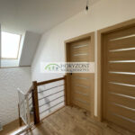 Okna PCV, Ściany wygładzone. Drewniane schody prowadzące na piętro.